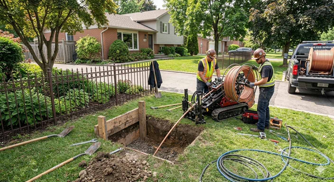 Trenchless replacement typically requires only two small access points — one near your foundation and one near the property line — minimizing disruption compared to traditional excavation.